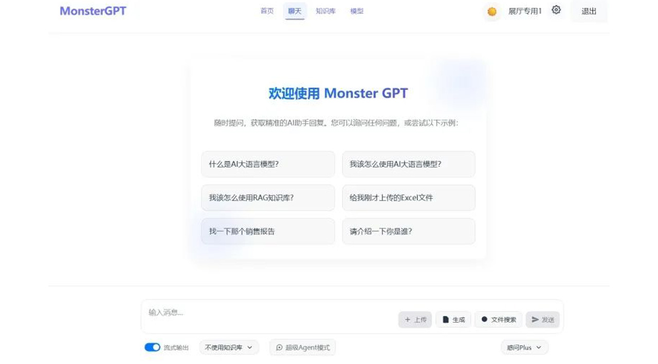 MonsterGPT内置智能Agent,可执行数据整理、报告生成、跨系统联动等自动化代理功能,将知识从简单的信息转化为可直接应用于业务的方案,真正成为企业决策与创新的得力助手。